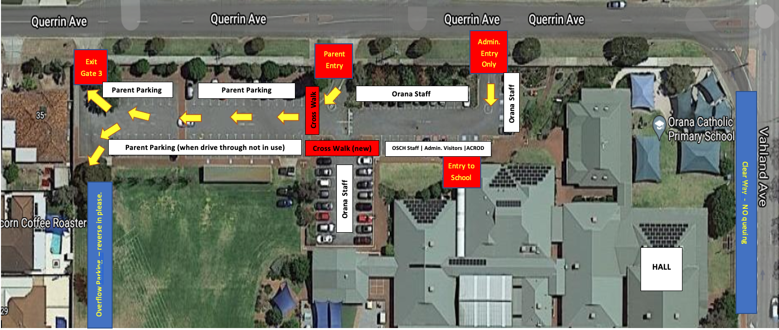 STAFF CARPARK – Can only be used by OSHC parents/carers at: before 7.45pm and after 3.45pm.